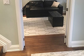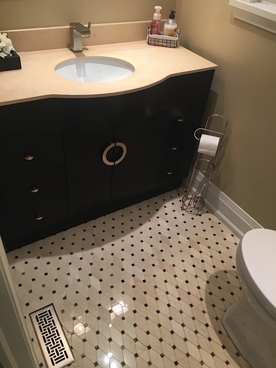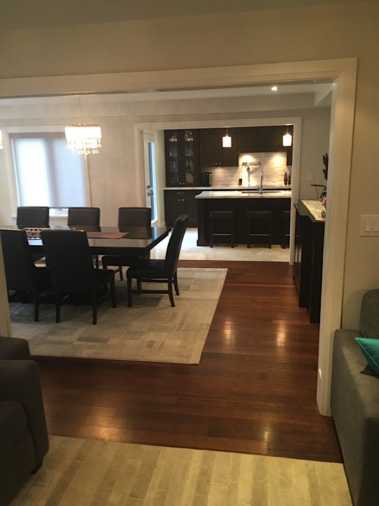 The brand new flooring and staircase were installed unfinished, and were sanded and stained, on site, from top to bottom, so that the finish would be consistent and continuous. The open concept main floor design leads you right into the beautifully designed KITCHEN, with a gorgeous island as its focal point, open to a stunning dinning room area with an oversized, custom made dining table designed to welcome and entertain. The dining area leads to the warm, relaxing family room with its contemporary fireplace with a beautiful marble surround and built in TV. DIRENZO GROUP GENERAL CONTRACTORS and DESIGN team work hand in hand with the client to stay on budget and on time.