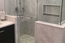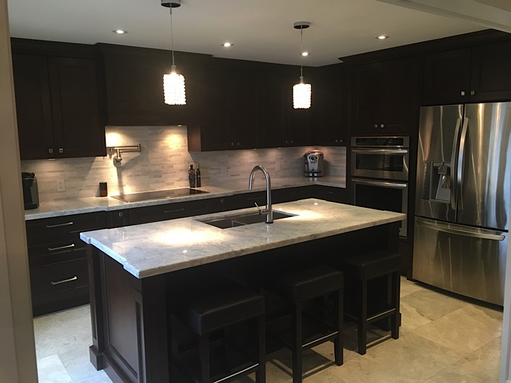 DIRENZO GROUP and its expert sub trades spared no expense on redesigning and constructing STRUCTURAL OPENNINGS to create an open concept main floor with and a brand new staircase to modernize this KING CITY home. This FULL HOME RENOVATION included the installation of the best marbles in the custom bathrooms, along with sleek plumbing fixtures, glass enclosures, step beveled trim and shaker style doors which gave this home the contemporary look and the exact character the clients wanted.
