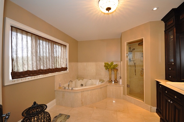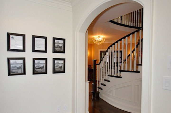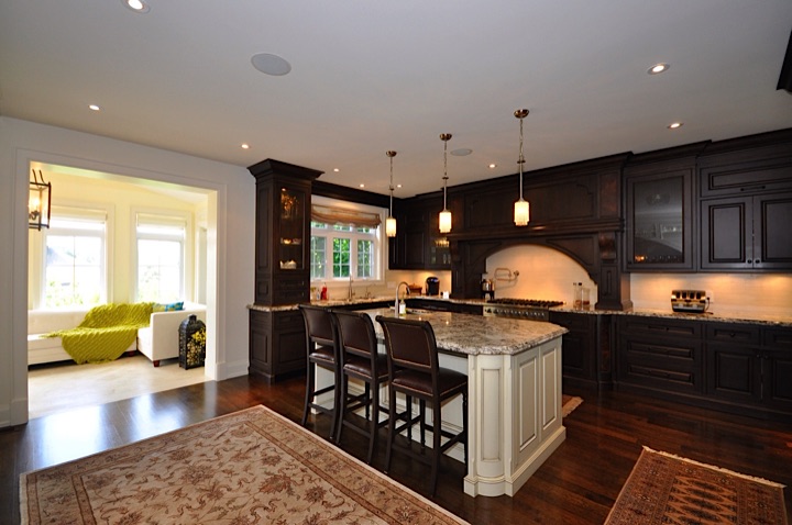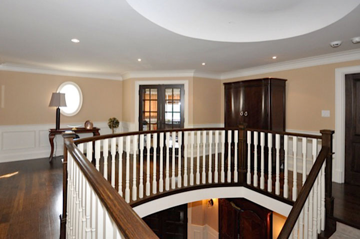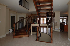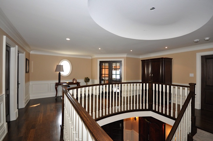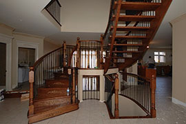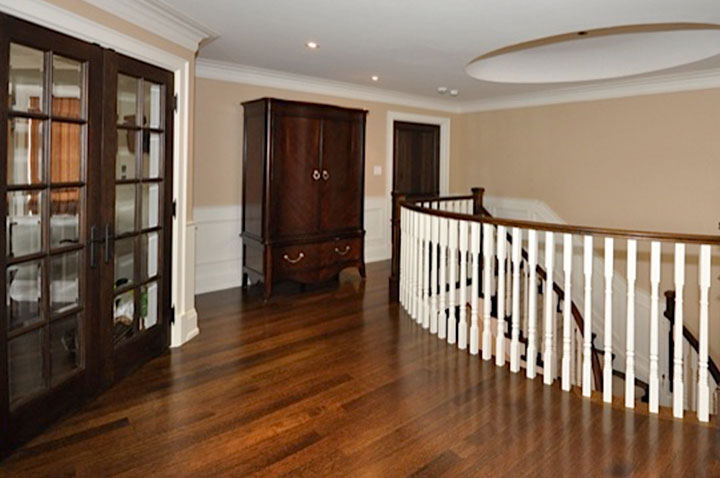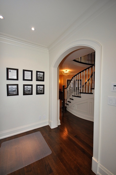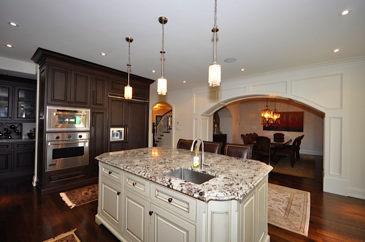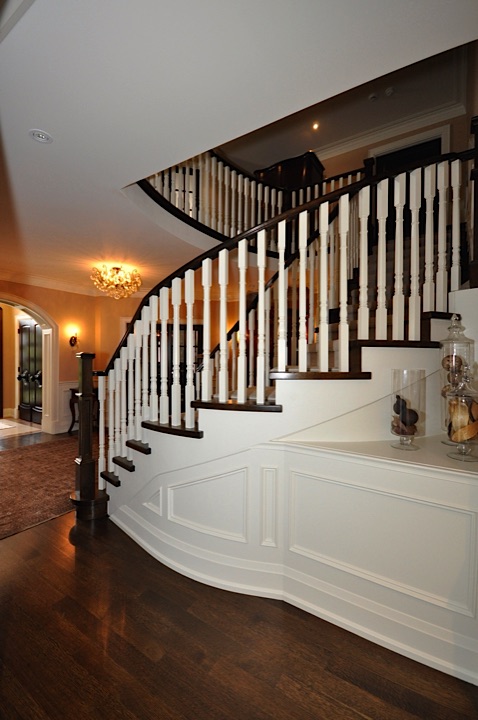 Installing unfinished engineered hardwood flooring throughout allowed us to sand and stain to match the stunning staircase. Subtle arches and crown moulding throughout the main floor added character to the design. We finished off this FULL HOUSE RENOVATION with new decking around the SUNROOM and landscape around the pool. DI RENZO GROUP INC takes the time to listen to the client and DESIGNER to make your dreams reality.