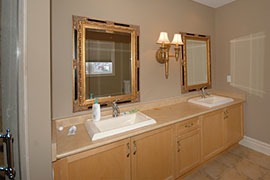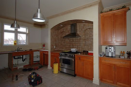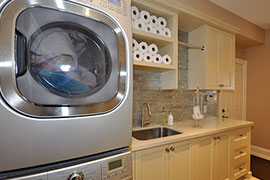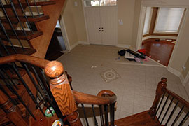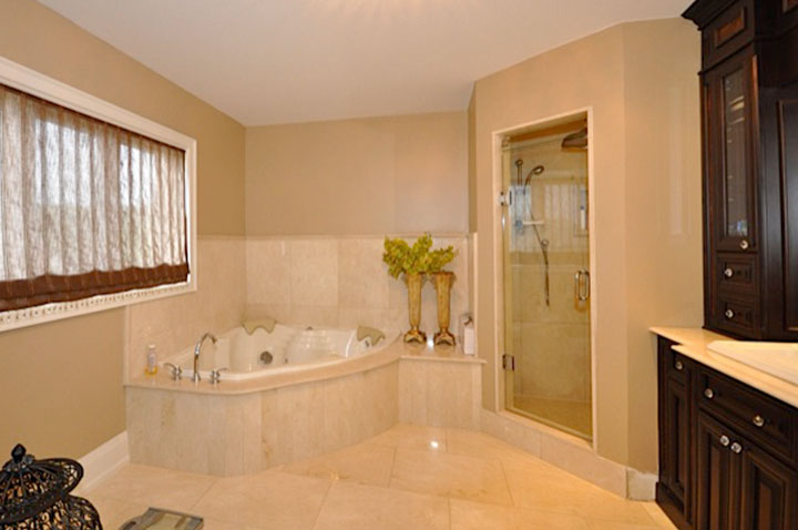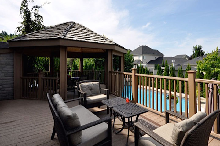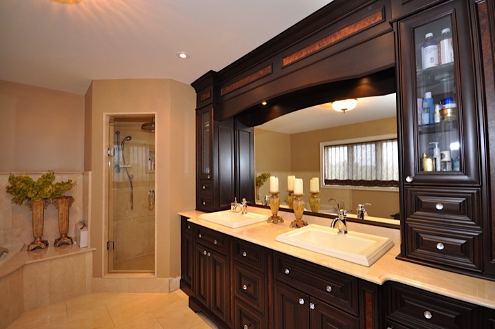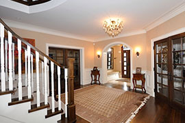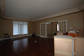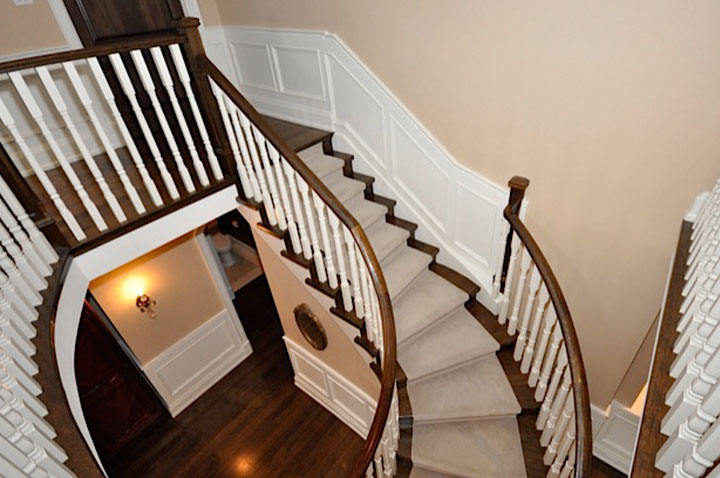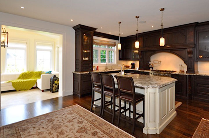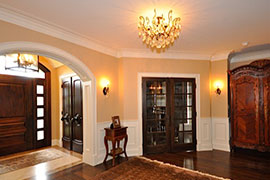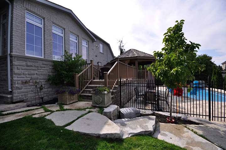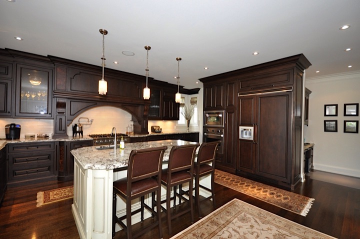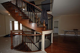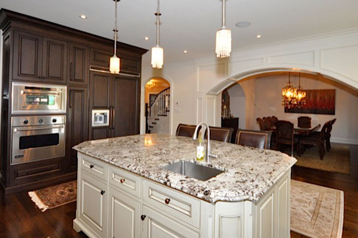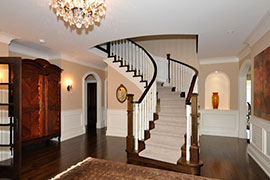 Installing unfinished engineered hardwood flooring throughout allowed us to sand and stain to match the stunning staircase. Subtle arches and crown moulding throughout the main floor added character to the design. We finished off this FULL HOUSE RENOVATION with new decking around the SUNROOM and landscape around the pool. DI RENZO GROUP INC takes the time to listen to the client and DESIGNER to make your dreams reality.