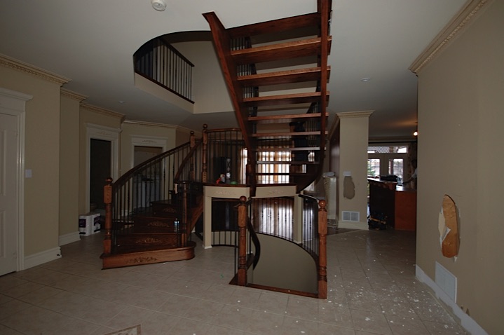This MAPLE RENOVATION was a DESIGN dream and a GENERAL CONTRACTOR challenge. Designing this entrance and staircase as a main focal point just brought everything together. In the DESIGN we added a stunning SUNROOM attached to open concept kitchen dinning area. We also upgraded the bedrooms and custom bathrooms to accommodate all the families needs.