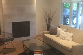 DIRENZO GROUP's DESIGN and GENERAL CONTRACTING experience put together custom bathrooms, a modern kitchen, new pre finished hardwood and stunning fireplace. The installation of a structural beam gave the client an open concept in the basement and allowed us to be very creative with the space. DIRENZO GROUP takes pride in their work and being a leader in the HOME RENOVATION business.