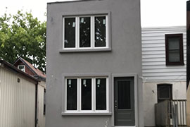 The exteriour of the house was falling apart and had many structural issues but once we cleaned it up and addressed the issues we installed a 2” foam with a stucco finish that also increased the R value. This house was also equipped with heated floors in the basement, spray foam throughout, new windows and a completely upgraded H-Vac system to keep it energy efficient. Another project on time and on budget by Direnzo Group Inc. -
