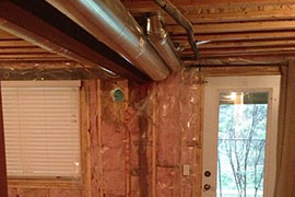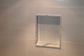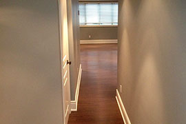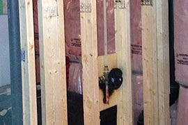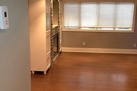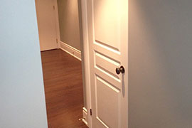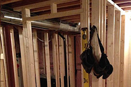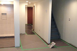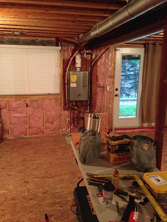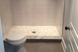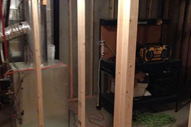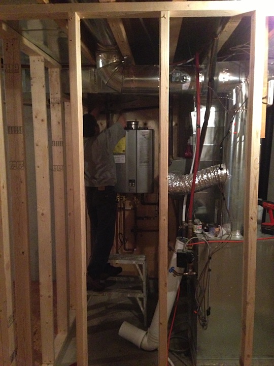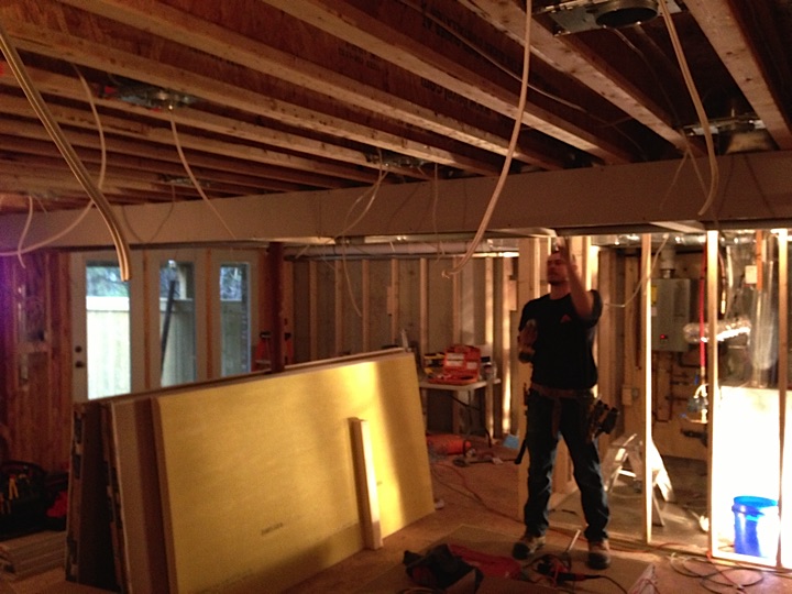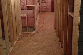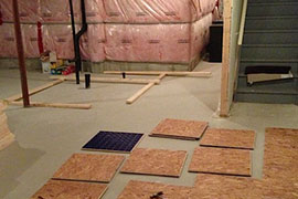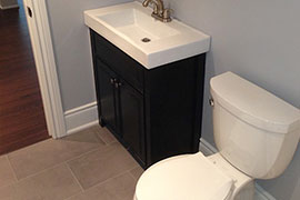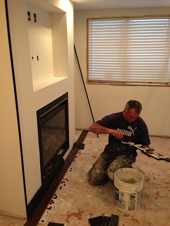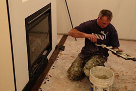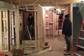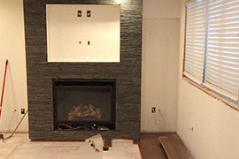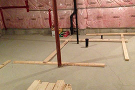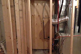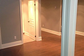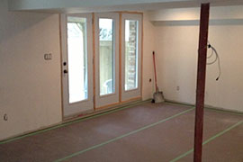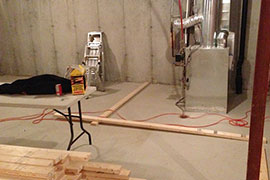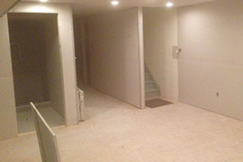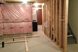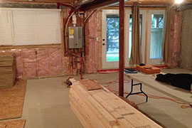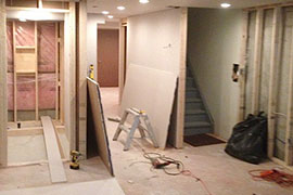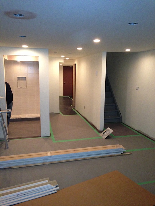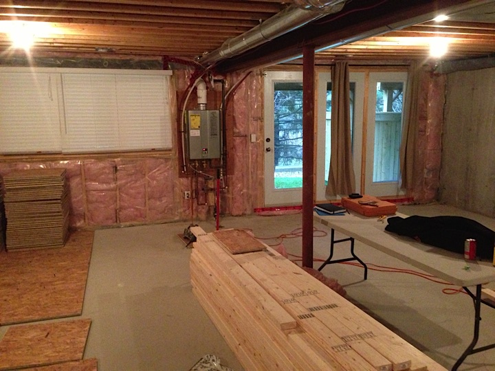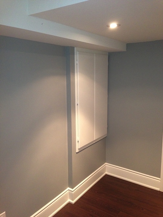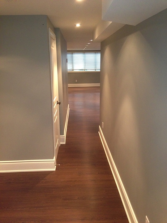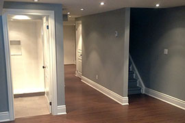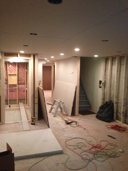 This BASEMENT RENOVATION was actually pretty straight forward except the instant hot water tank being in the family room. We started this project by installing the DRY-CORE SUBFLOOR and once we moved the hot water tank where it should be it was off to the races. Stunning open concept, clean lines, modern fire place, and custom bathroom give this BASEMENT all the character you could ask for. Having a walk out to the back yard this family put this basement to good use. DIRENZO GROUP signature custom columns and cabinets on each side of the fire place TV combo shows DESIGN creativity.